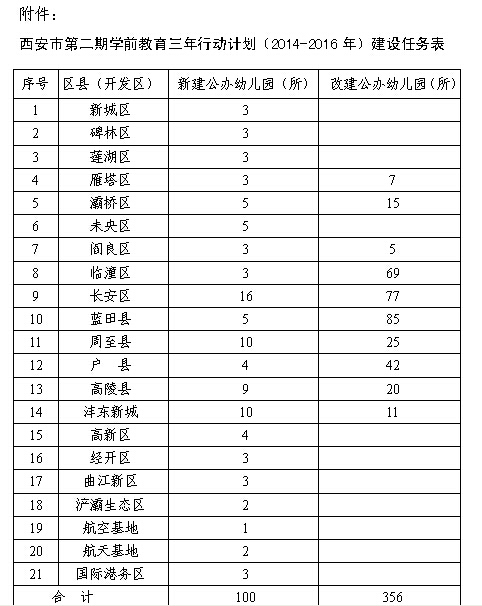 附件:西安市第二期学前教育三年行动计划(2014-2016年)建设任务表